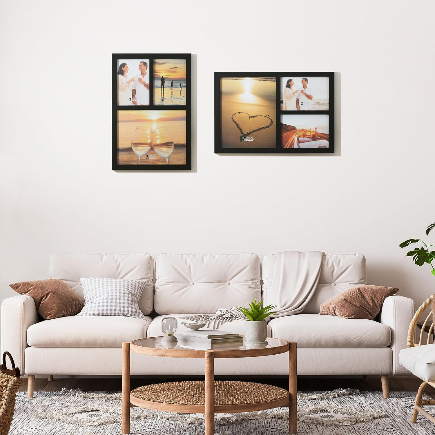 UMICAL Collage Picture Frame for 8x10 and 2 5x7 Pictures Display Black Wood 3-Openings Photo Frames Made for Tabletop Stand and Wall Mounting